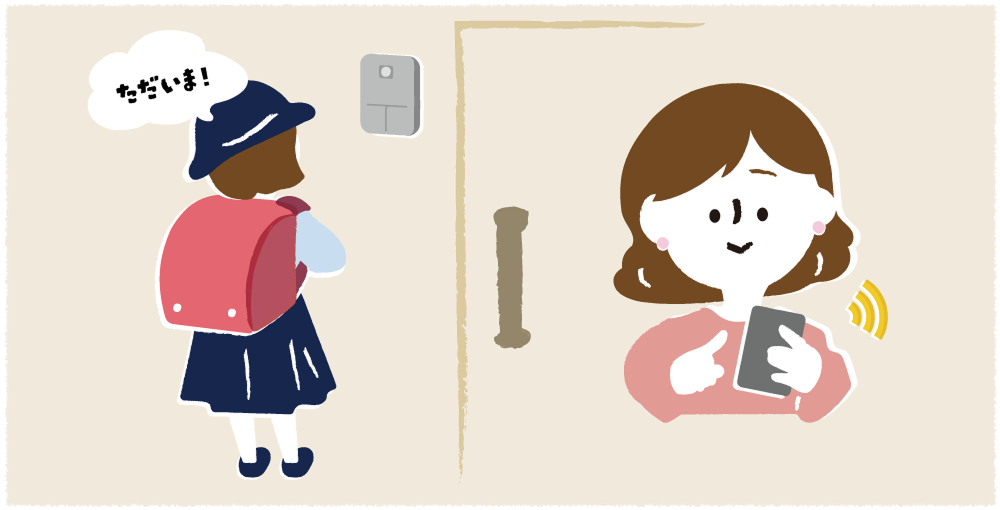 子どもの帰宅をインターホンで確認したら、玄関の鍵をアプリで解錠。 鍵の締め忘れの不安が解消できます。