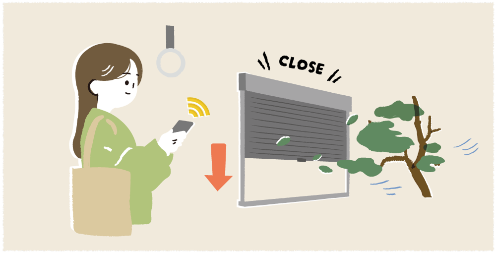 外出先からアプリでシャッターを操作。便利・快適に加え、セキュリティ面でも安心です。