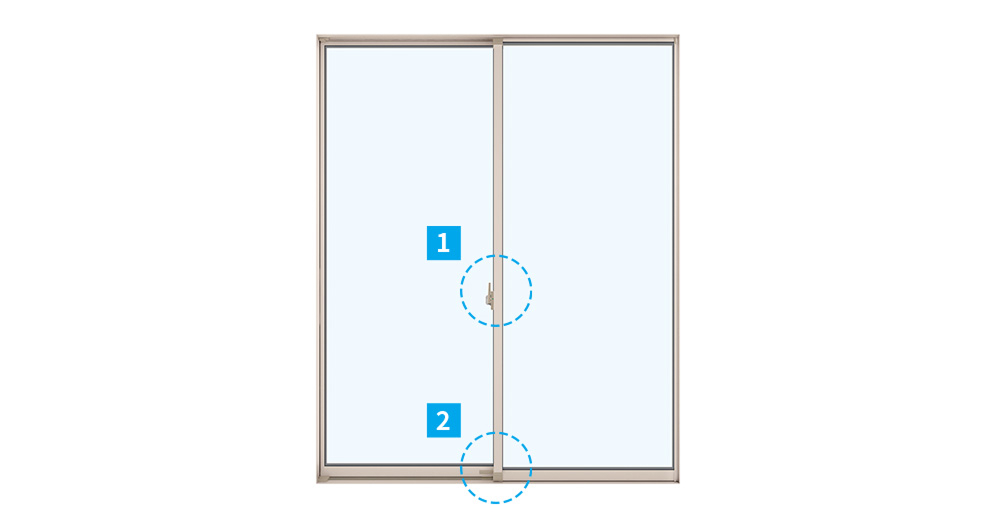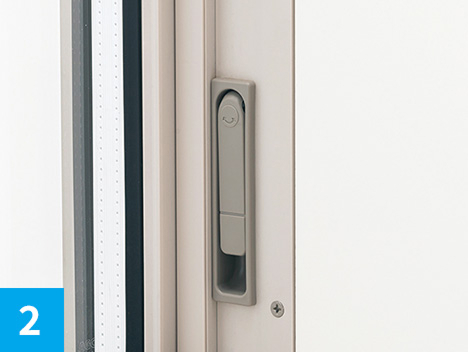 防犯対策として2ロック仕様が安心。万が一ガラスを破られることがあっても、侵入までの時間をかせぎます。