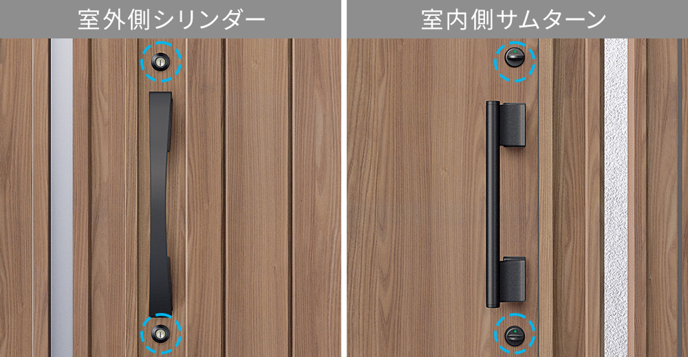 キー1本でドアの2ヶ所を施解錠する2ロックを採用しています。