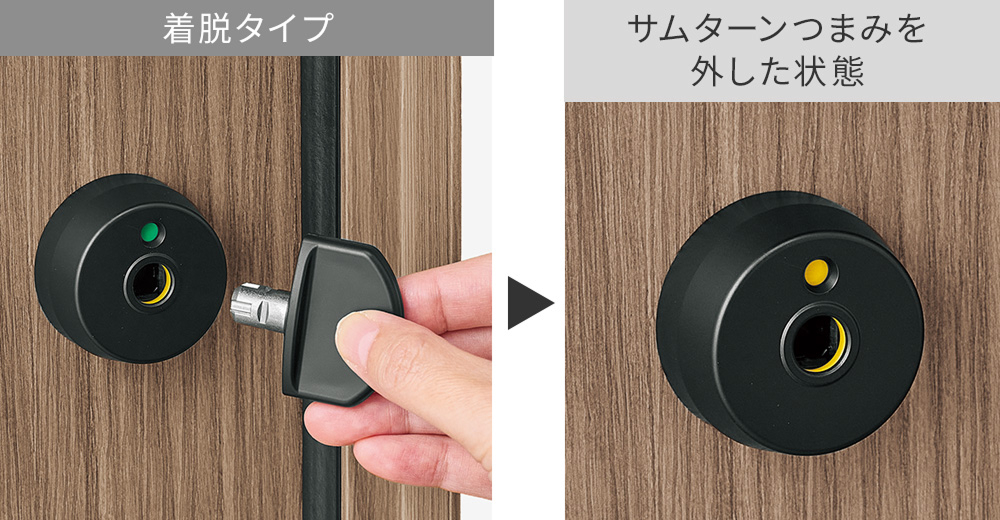 着脱式で簡単に取はずすことができます。 外出時や就寝時に外しておけば、万が一、ガラスを割られてもサムターンを操作してドアを開けられる心配がありません。