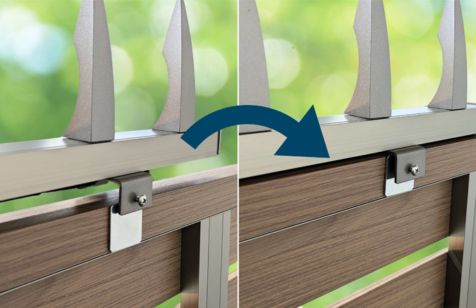 ドライバー1本で、フェンスに「安心」をプラス既存のフェンスに挟んで締めるだけ。大掛かりな工事不要で、防犯対策と美観を両立。剣先部分はスタイリッシュなデザインで、住まいをさりげなく守ります。