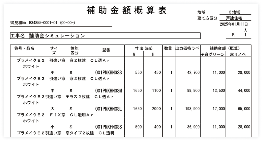 三協アルミ見積システム「MONOS」に、補助金額・製品型番を表示