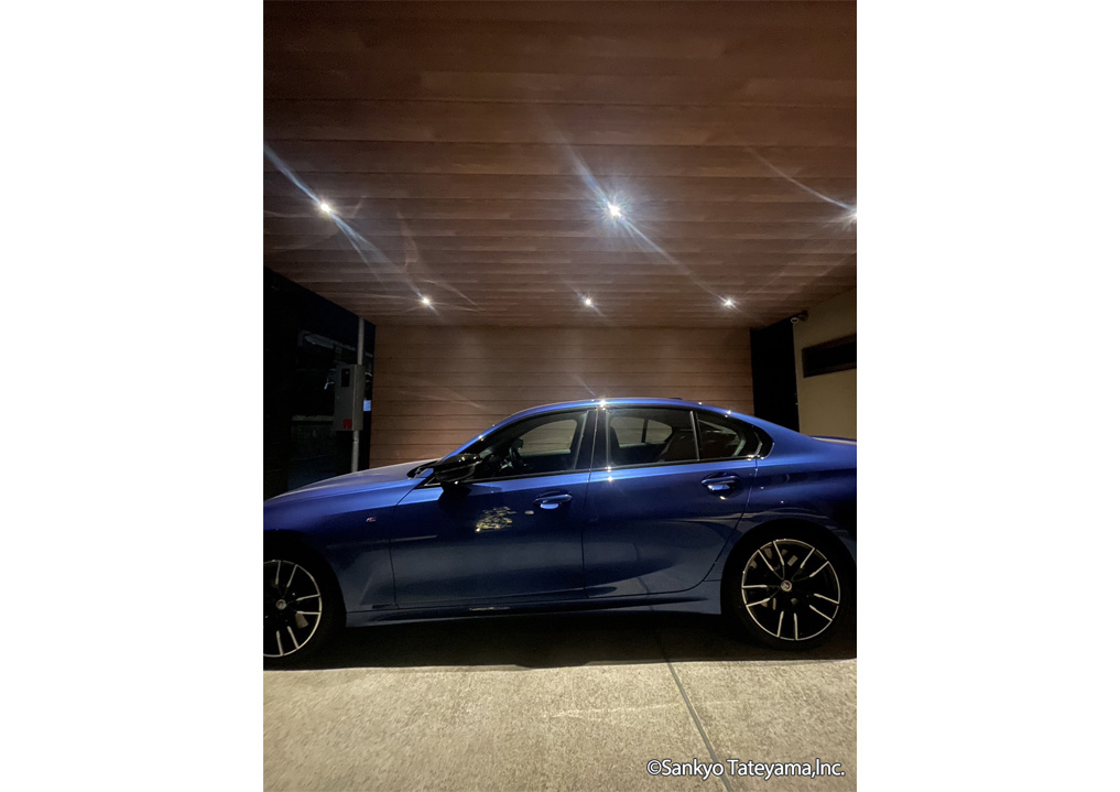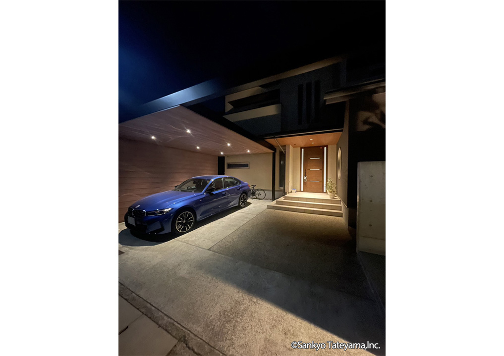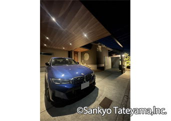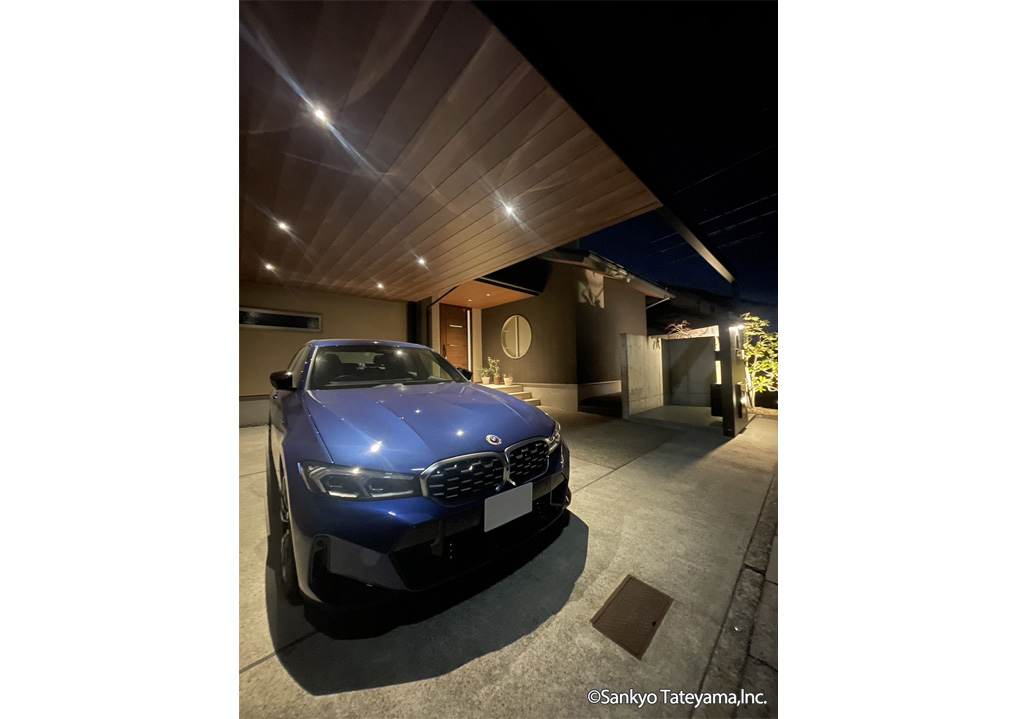 リノベーション工事のため、後から追加するアイテムで取ってつけた感じにならぬよう、和モダンな外観とつながりを持たすことや利便性を考え、柱の位置を工夫しX.スタイルを使用。