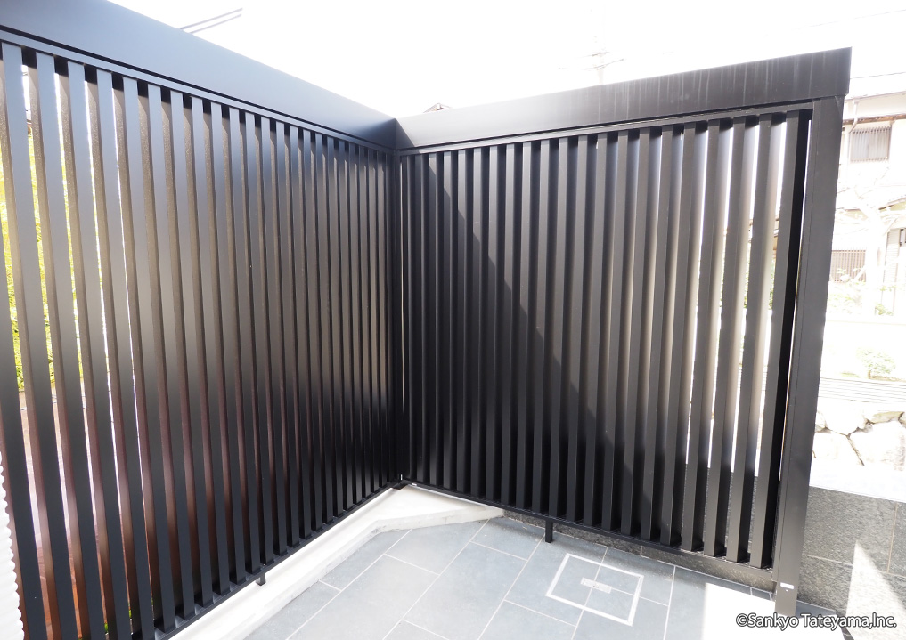 玄関前や勝手口前、リビング前のタイルデッキに目隠しスクリーンを設置しました。