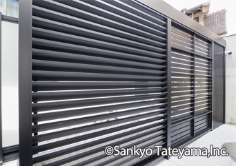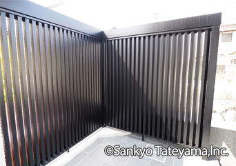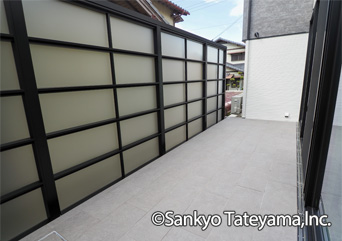 様々な格子を組み合わせた意匠性の高いスクリーンで目隠しを実現。