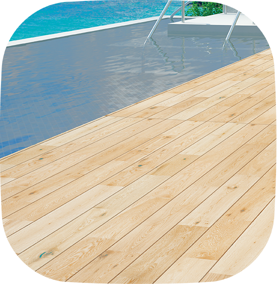- 水が浸透せず、カビの発生を抑えるため衛生的なプールサイドを実現。