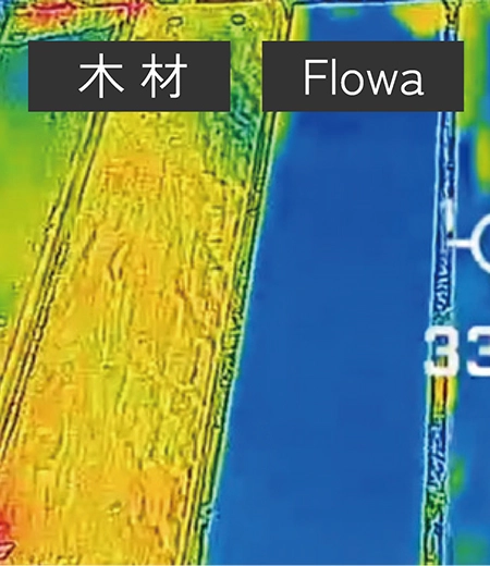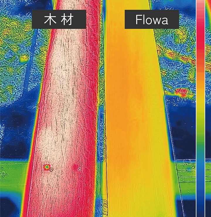 - 蓄熱量が小さいため、日向でも温度が上がりにくく、日陰では瞬時にクールダウン。