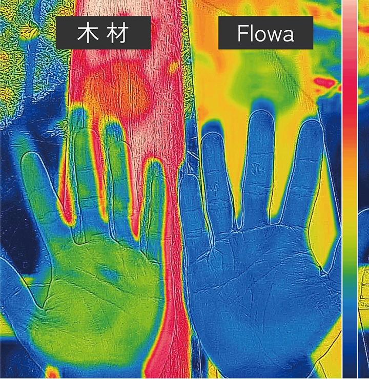 子供や高齢者、そして大切なペット。あらゆる世代が触れる場所だからこそ、Flowaは「心地よさ」と「快適さ」を追求しました。天然木のような温もりがありながら、やけどリスクやささくれの心配がない、安心して過ごせるフロアです。