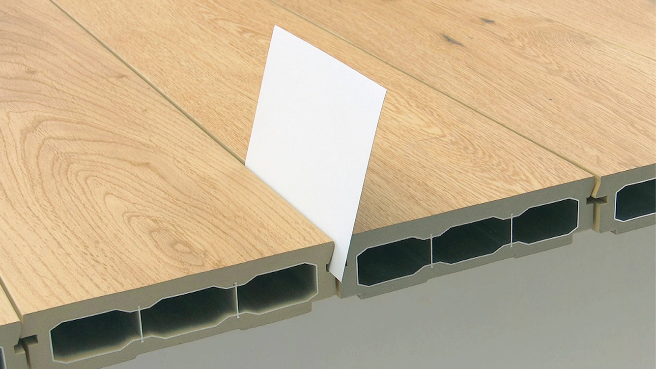 表面の凹凸は本物の木材から型取りし、裸足でふんだときも心地よい仕上がりです。
