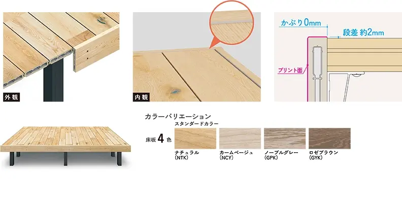 Flowaが目指したのは、単なる「デッキ」の枠を超えた空間の連続性。最新のプリント技術によるリアルなテクスチャと、本物の木から型取りした凹凸感。