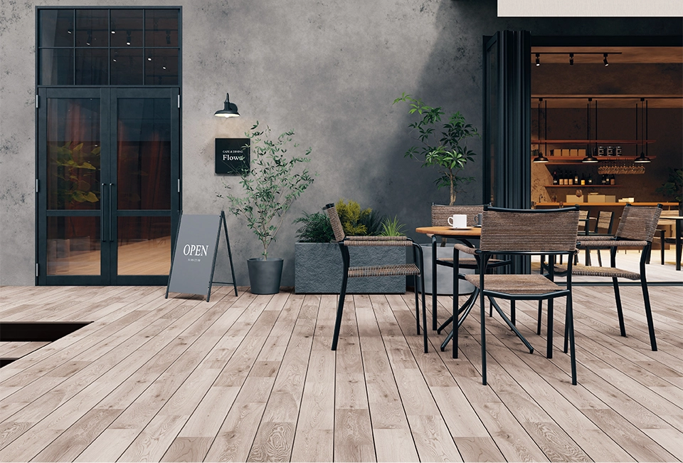 Flowaが目指したのは、単なる「デッキ」の枠を超えた空間の連続性。最新のプリント技術によるリアルなテクスチャと、本物の木から型取りした凹凸感。