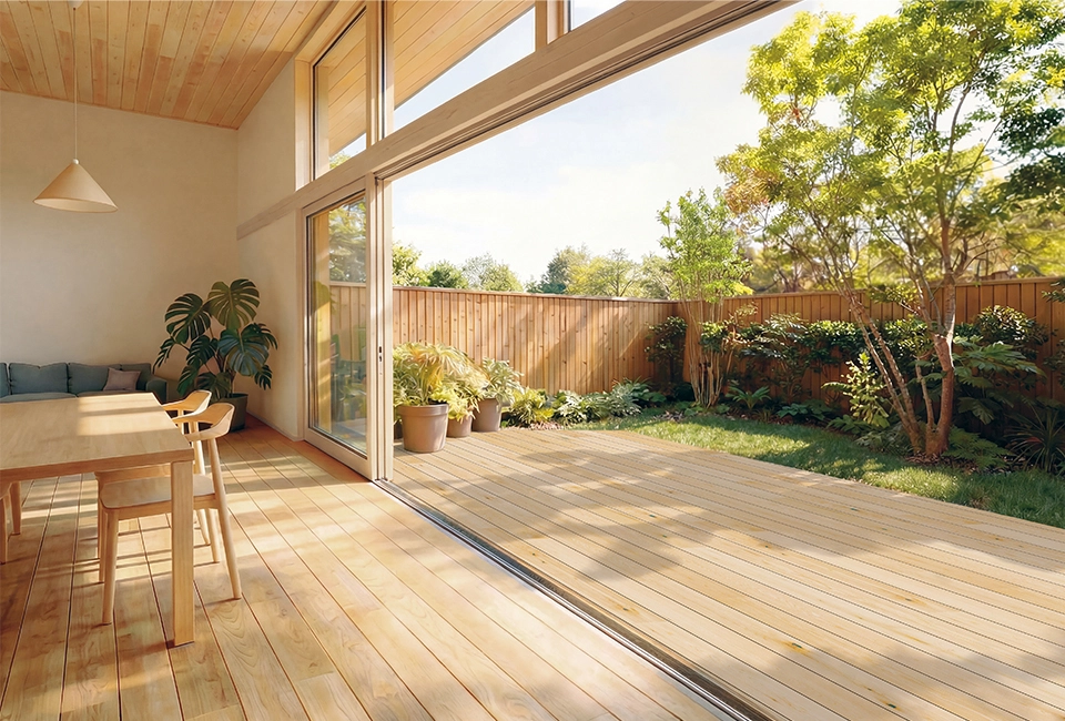 室内フローリングとつながる心地よさと美しさが、住空間の「質」そのものを変えます。Flowaは単なる屋外空間ではなく、人生をより豊かに、より開放的にする「アウトドアリビング」への招待状です。