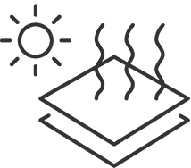 - 蓄熱量が小さいため、日向でも温度が上がりにくく、日陰では瞬時にクールダウン。