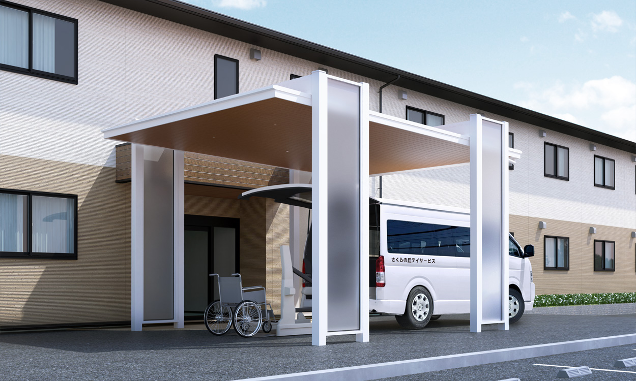 アーバングレー(UC)/5558/H25/屋根枠材:Pタイプ/天井材・たて格子パネル:ビターグレイン(HG)/オプション:ダウンライト