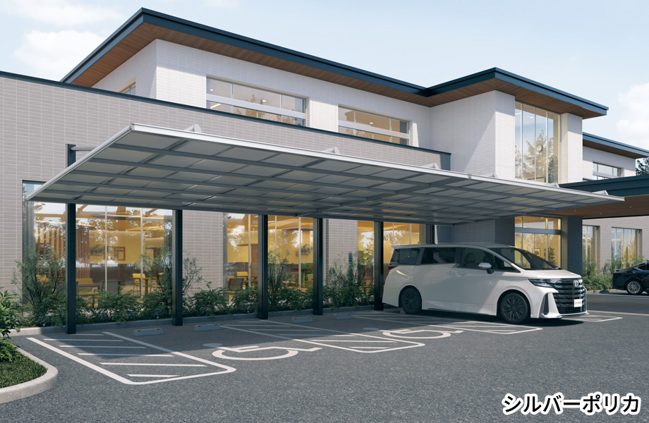 モノトーン系の住宅にマッチする遮熱効果抜群の屋根パネル「シルバーポリカーボネート板」、「ブラックポリカーボネート板」。