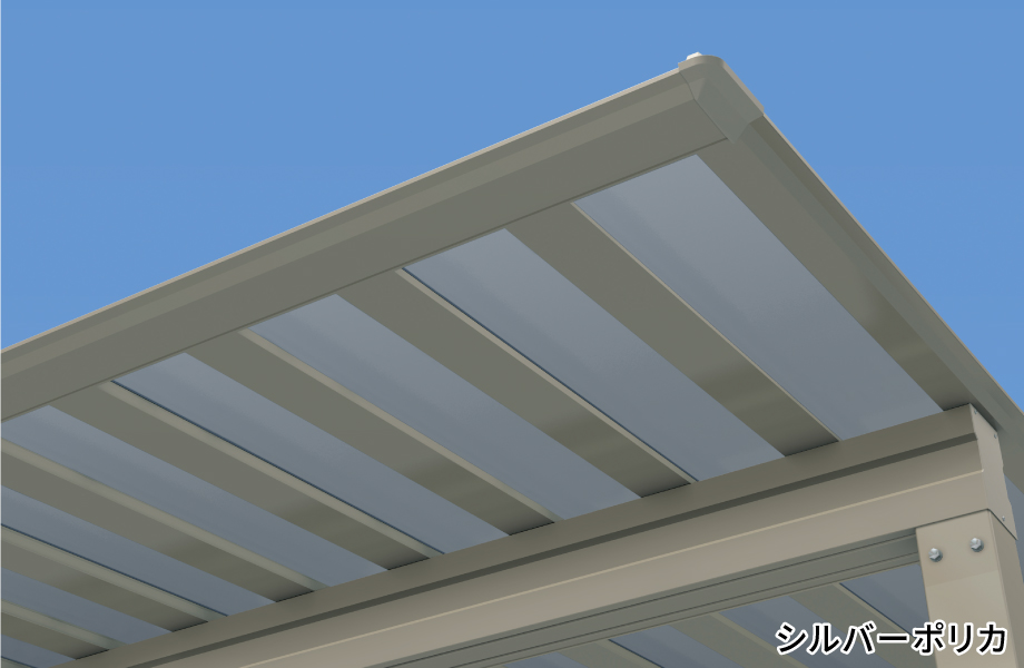 モノトーン系の住宅にマッチする遮熱効果抜群の屋根パネル「シルバーポリカーボネート板」、「ブラックポリカーボネート板」。昇温抑制効果があり、汚れを目立たせません。