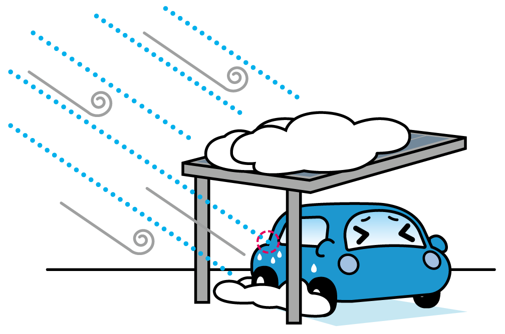 風が強い日にはどうしても側面から雪が吹き込み、せっかくカーポートを設置したのに、車の雪下ろしをしなければならないことも。