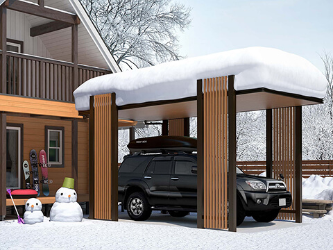 コストパフォーマンスも高く、様々なメリットのあるカーポートですが、特に積雪地域では、壁やシャッターで四方をおおわれているガレージと比べると、冬場の雪の吹き込みは気になるところです。