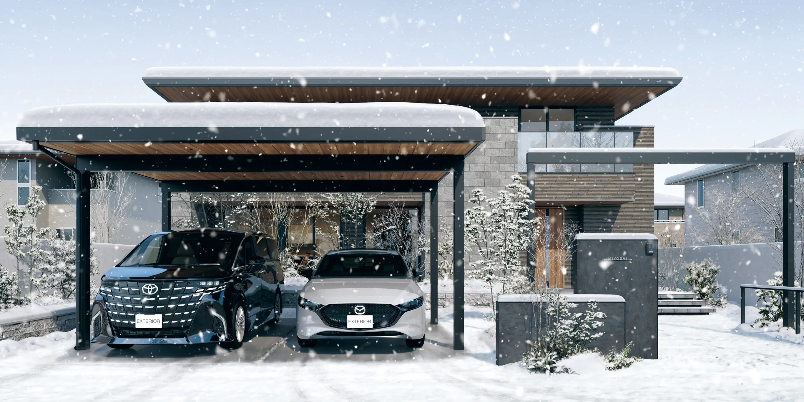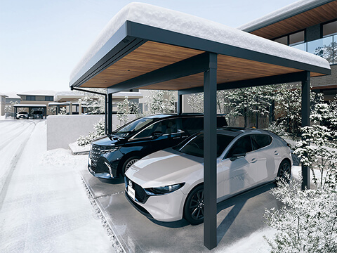 雪・風に強いハイスペックカーポートシリーズ「タフクオリティー」で暮らしを守る。