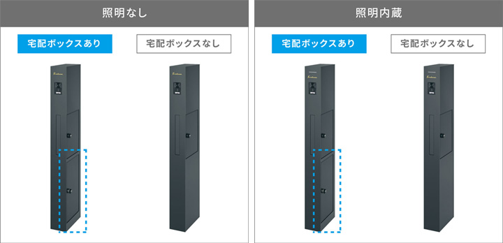 スリムなポールに照明内臓タイプや宅配ボックスあり・なしタイプなど