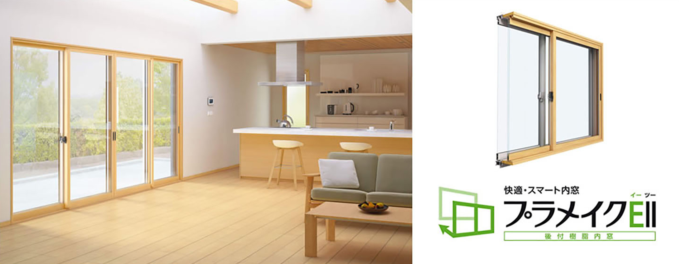 今ある窓の内側に設置するだけで、住まいの快適さを格段にアップしてくれるのが「快適・スマート内窓 プラメイクEU」です。既設外窓との間に生まれる中間空気層と熱が伝わりにくい樹脂により、外気を遮断します。高い断熱効果でエアコンの効きもよくなり、光熱費削減にも貢献します。