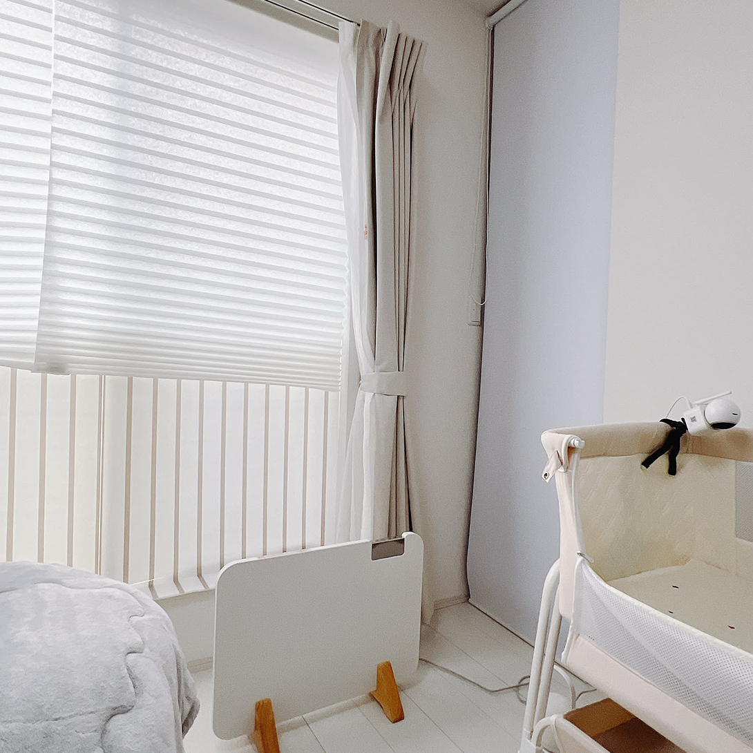 室内で最も寒さ・暑さを感じやすいエリアは、熱の出入りが大きい窓まわりです。最も手軽な方法としては、窓まわりの防御力を高めるDIYとして、窓に貼るタイプの断熱シートや隙間を塞ぐテープなどがあります。こちらの投稿では、掃き出し窓にカーテンとプリーツスクリーン、さらに断熱パネルを設置。エアコンとパネルヒーターを併用して、窓から入る寒さ対策を講じています。